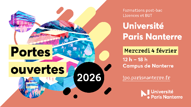 Vous avez étudié à l’Université Paris Nanterre ? Les Journées Portes Ouvertes sont l’occasion parfaite pour partager votre expérience et aider la nouvelle génération à faire ses choix !L’université propose une grande diversité de formations :90 parcours en Licence et BUT 1Plus de 180 parcours en Master, en formation initiale ou en apprentissageDes disciplines variées :Arts, Lettres, LanguesDroit, Économie, GestionSciences Humaines et SocialesSciences, Technologie, Santé👉 Venez accompagner vos proches, ou simplement relayer l’information : ils pourront rencontrer les enseignants, échanger avec les étudiants, visiter les campus et découvrir ce qui fait la richesse de la vie à Paris Nanterre.📅 Les dates à retenir :4 février – Licences et BUT – Campus de Nanterre7 février – UFR STAPS (sciences et techniques des activités physiques et sportives ) – Campus de Nanterre11 mars – IUT et UFR SITEC (Systèmes Industriels et Techniques de Communication ) – Campus de Ville d’Avray🔗 Plus d’infos : https://jpo.parisnanterre.fr/
