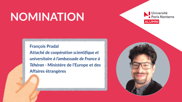 Chaque mois, nous mettons à l’honneur les diplômé·e·s de l’Université Paris Nanterre qui prennent de nouvelles responsabilités. Aujourd’hui, nous félicitons François Pradal pour sa nouvelle étape professionnelle.