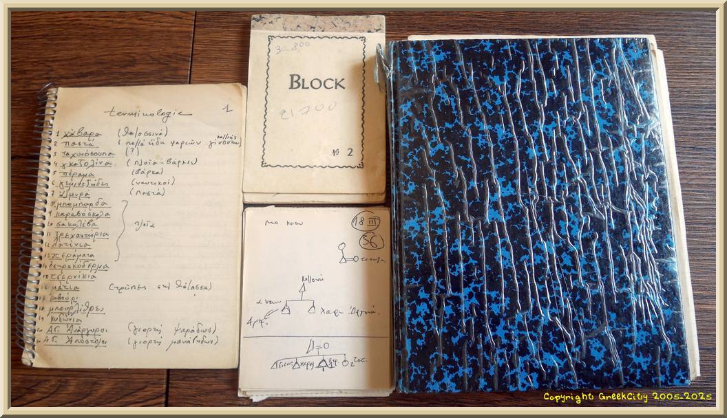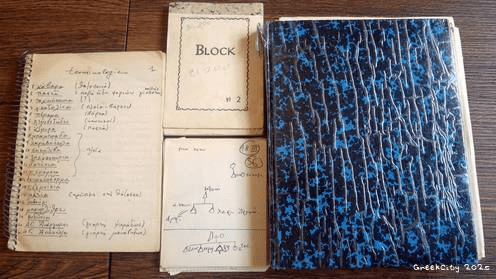 Je tenais ces trois carnets en grec, qui est ma langue maternelle, avec seulement quelques rares paragraphes en français et dans un style faisant souvent davantage preuve d’autodérision que de… scientificité réellement existante !