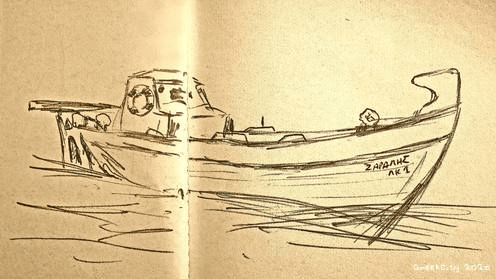 Croquis d’un bateau par un ami pêcheur. Petit carnet, Lesbos, 1989